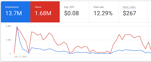 - 13.7 Million Impressions, 1.68 Million Views, and $267 Cost Per Conversion